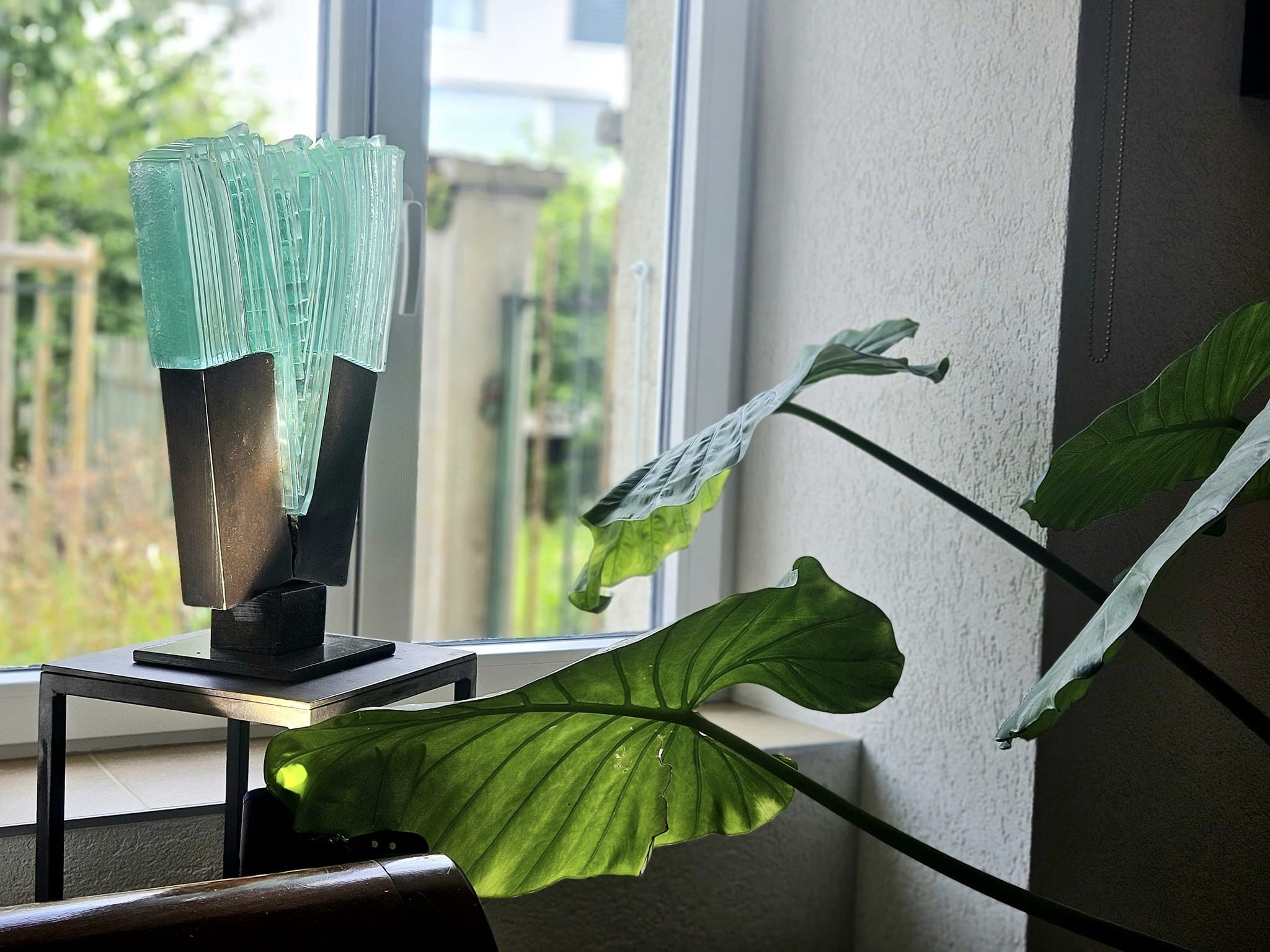 Acier et verre thermoformé.
