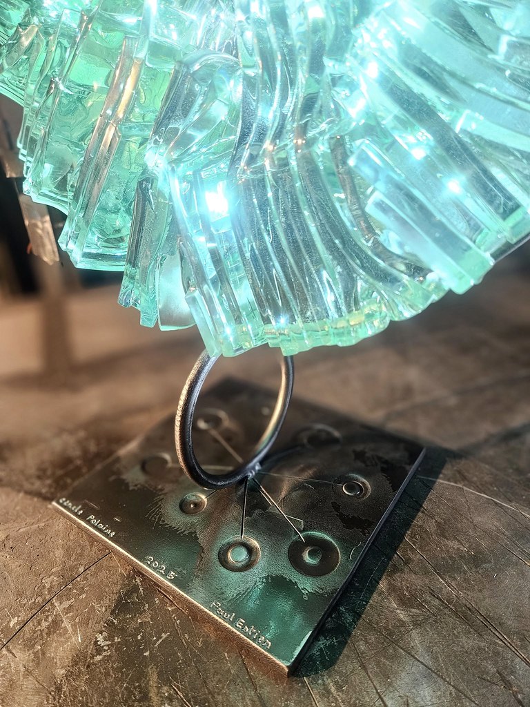 Verre thermoformé et acier forgé. Hauteur 50 cm - 25 kg